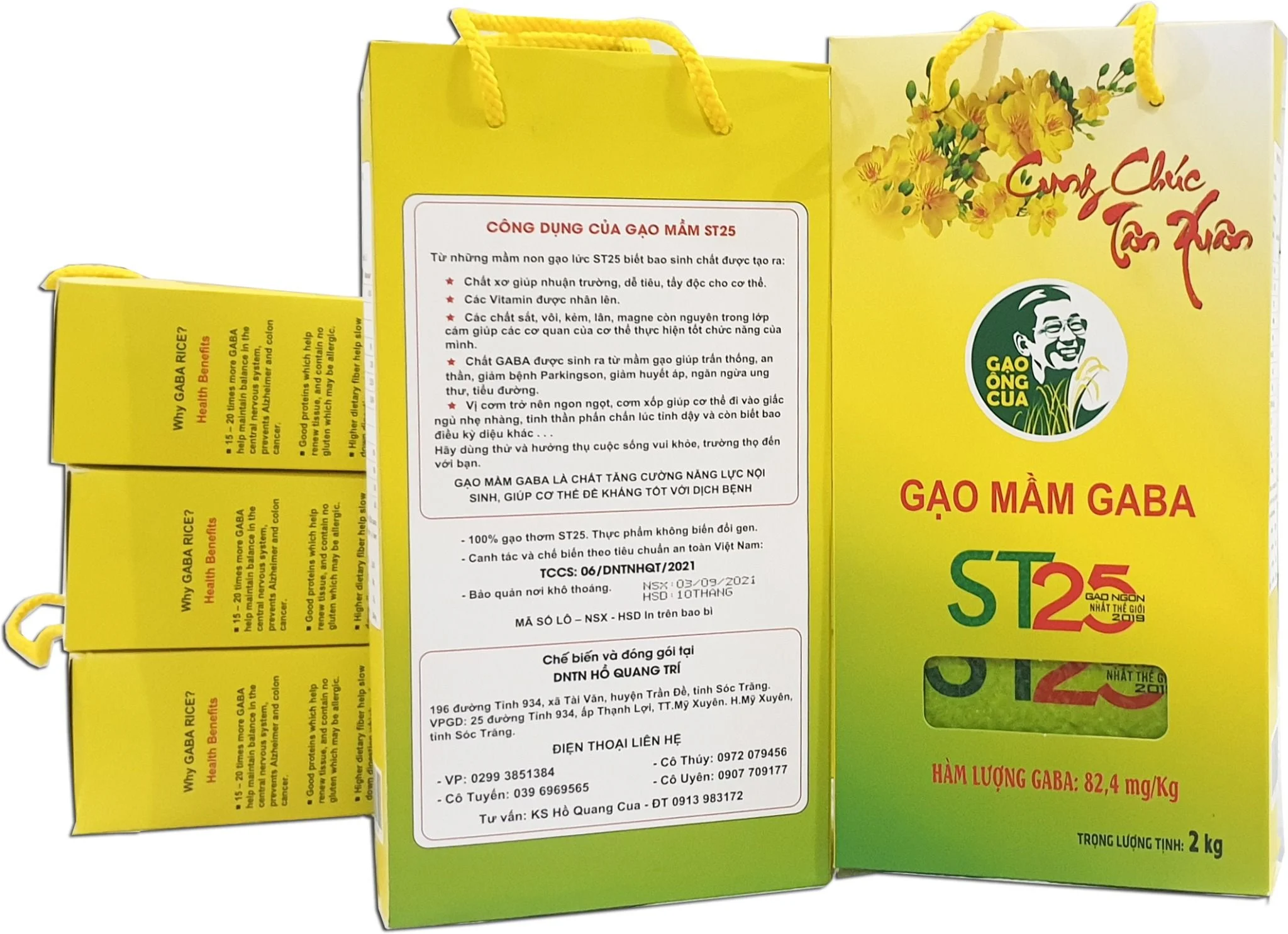 Gạo Mầm ST25 của kỹ sư Hồ Quang Cua được chế biến từ giống lúa thơm ngon ST25 đã từng đoạt giải nhất cuộc thi Gạo Ngon Thế Giới năm 2019 tại Manila, Philippines.