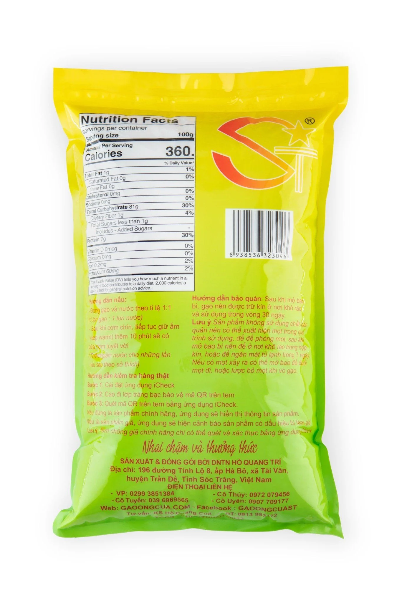 Hướng dẫn bảo quản: Sau khi mở bao bì, gạo cần được trữ kín ở nơi khô ráo và sử dụng trong vòng 30 ngày.
